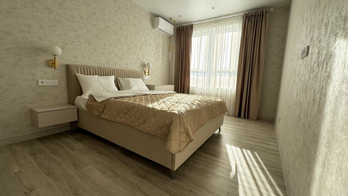- Функциональная кухня: духовой шкаф, варочная панель, чайник, холодильник, посудомоечная машина. Также в кухне имеется вся необходимая посуда для комфортного проживания.