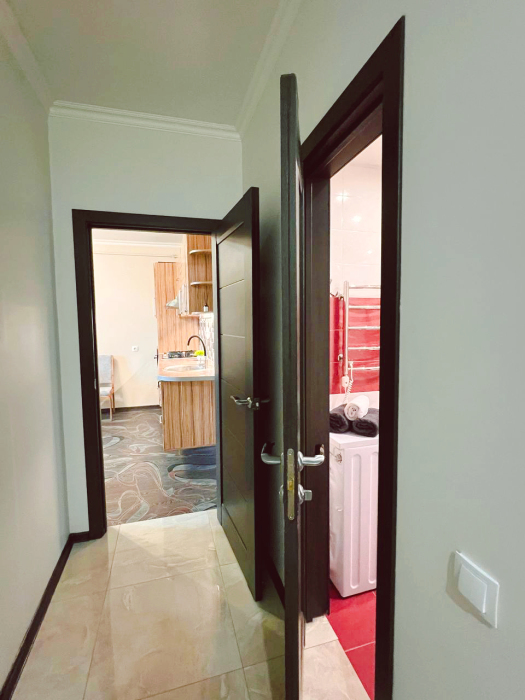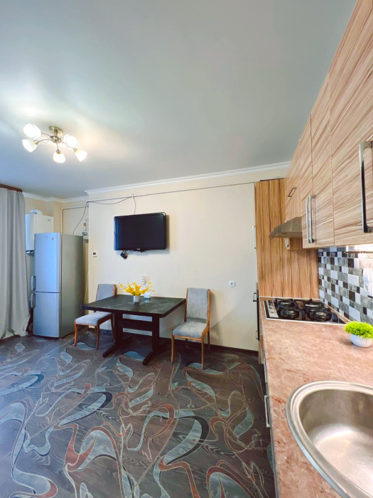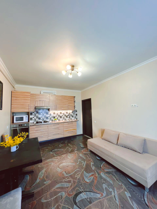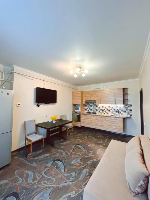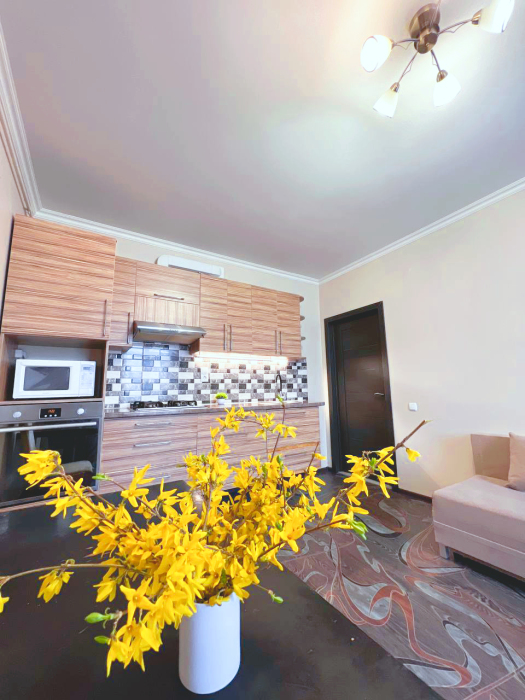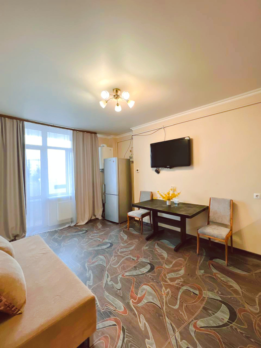 Уютная однокомнатная квартира Комфорт класса в Севастополе. В пешей доступности детские сады, школа, ТЦ «Новус», аптека, детская комната, доставка суши и пиццы, рынок, экопарк «Лукоморье», остановка общественного транспорта. Расстояние до железнодорожного вокзала составляет 5 км, до аэропорта – 22 км.
