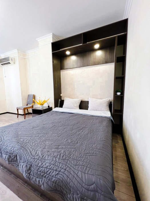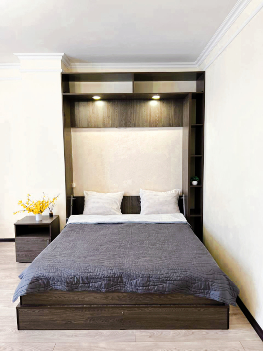 – Двухспальная кровать 160х200, диван-кровать 150х200, шкаф, тумба.