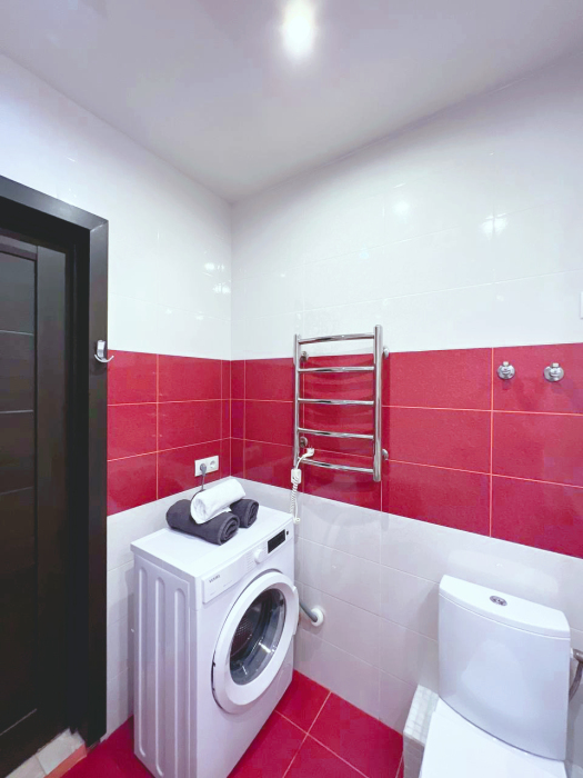 – Кухонная мебель, техника и посуда для приготовления пищи, холодильник, кондиционер, Smart TV, газовая плита, духовка, микроволновая печь, чайник, фен, утюг с гладильной доской, сушилка для белья, стиральная машинка, пылесос.