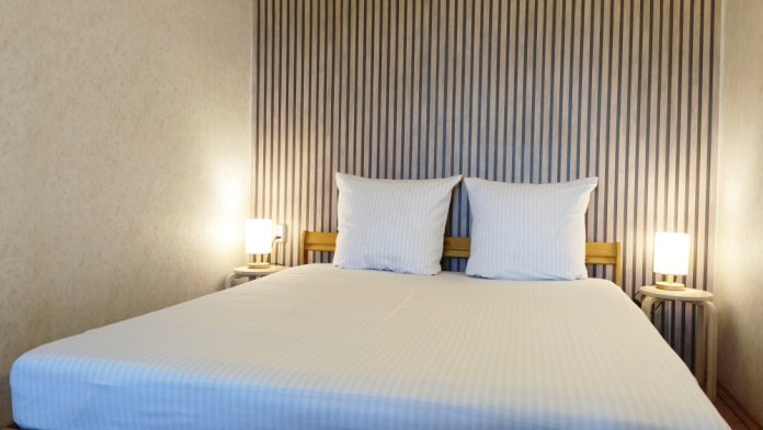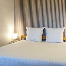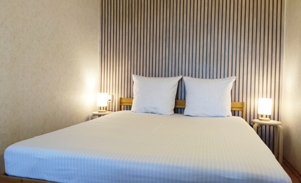 Большая двуспальная кровать (160*200) с матрасом средней жёсткости, односпальная кровать (90*190) с мягким матрасом. Матрасы с независимыми пружинными блоками. Комплект натурального чистого белья и полотенец.