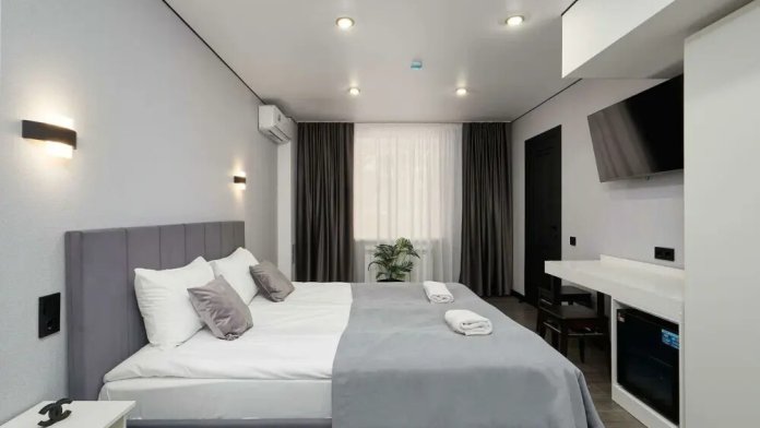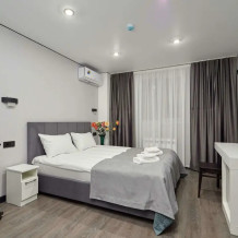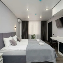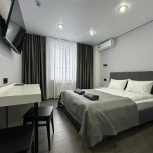 Каждый наш номер с хорошей звукоизоляцией располагает всеми удобствами для комфортного времяпрепровождения. В распоряжении гостей телевизор с плоским экраном, письменный стол, удобная кровать, шкаф для одежды, холодильник. Ванная комната оснащена всеми необходимыми туалетно-косметическими принадлежностями. К услугам гостей круглосуточная стойка регистрации и бесплатный Wi-Fi.