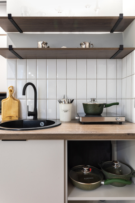 В квартире с комфортом могут разместиться два человека. В квартире есть: кухонный уголок и обеденная зона, телевизор с кабельными каналами и смарт тв. Кухня оснащена: холодильником плитой, электрическим чайником, микроволновой печью, кофеваркой, чай, кофе, сахар, соль всегда в наличии.