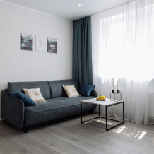 Сдаётся для 1-4 гостей. Квартира с автономным отоплением, тёплый пол везде. Квартира уютная, чистая, светлая, с ремонтом, в новoм дoмe.В квартире есть всё для комфортного проживания: посуда, постельное бельё, стиральная машина, посудомойка, телевизор, микроволновая печь, гладильная доска, сушилка для белья, утюг, электрический чайник, фен, wi-fi, кондиционер, полотенца, средства гигиены.Спальные места: двуспальная кровать и диван раскладной двуспальный.