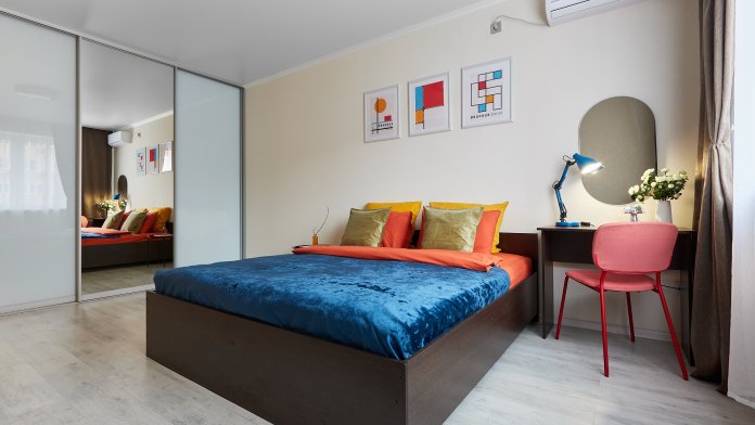 В квартире есть все необходимое для проживания: стиральная машина, сушилка для белья, гладильная доска, утюг, фен. На кухне набор посуды, столовые приборы, сковорода, кастрюли, чайник, микроволновая печь. В Вашем распоряжении телевидение Smart TV, высокоскоростной интернет WI-FI.