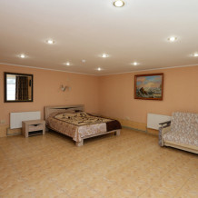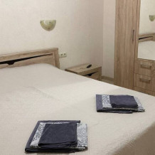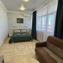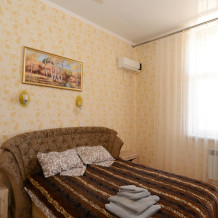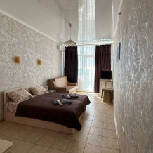 Спальные места в комнате: двуспальная кровать (ширина 180 см) двуспальный диван. В этой комнате есть все для удобного отдыха: кондиционер, плазменный телевизор, холодильник, санузел с душем, фен, шкаф, холодильник, электрочайник. Прекрасный вид с балкона. Находятся на 2, 3 и 4 этажах.