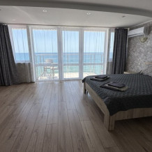 Спальные места в комнате: 1 двуспальная кровать (ширина 170 см), двуспальный диван. В этой комнате есть все для удобного отдыха: кондиционер, плазменный телевизор, холодильник, санузел с душем, фен, шкаф. Прекрасный вид с большого балкона (террасы), где можно покушать и полюбоваться на море добавляет комфорт этой комнате