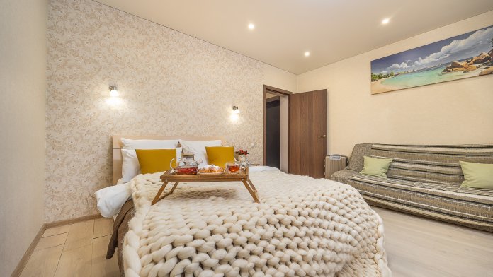 Бесконтактное заселение (на двери стоит кодовый замок, каждый гость получает свой индивидуальный пароль, по которому он попадает в квартиру, поэтому заезд и выезд могут происходить в любое время суток).