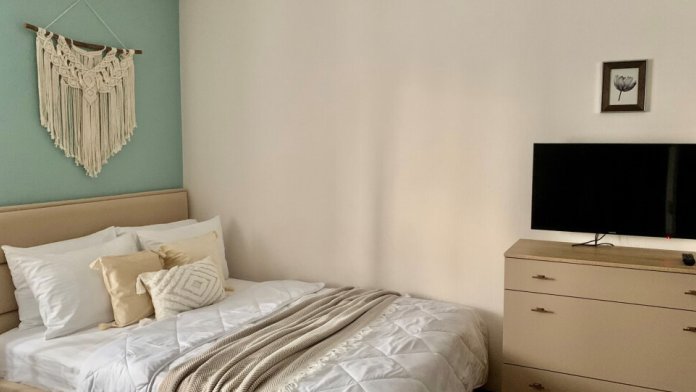 В квартире есть все необходимое: удобная двухспальная кровать, кресло-кровать, кухонный гарнитур, плита, микроволновка, чайник, стиральная машина, фен, телевизор, шкаф, обеденная зона, гладильные принадлежности, Wi-Fi. Предоставляются туалетно-косметические принадлежности