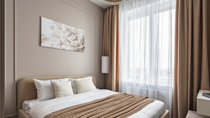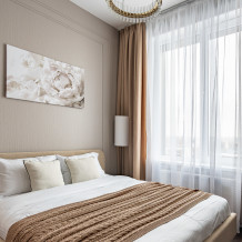 — Спальные места 2+2. Удобная кровать в спальне (160 см) и раскладной диван в гостиной (140 см).