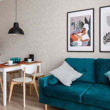 За столом могут удобно разместиться 4 человека, при этом за ним удобно как обедать, так и работать с ноутбуком. В комнате предусмотрен вместительный комод, в котором вы можете разложить все ваши вещи, а в шкафу в коридоре вы можете повесить (как верхнюю, так и повседневную) одежду на плечики. В шкафу также можно разместить обувь и сумки.