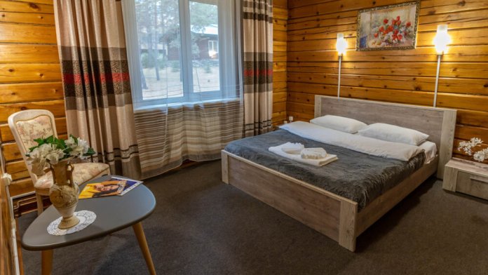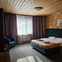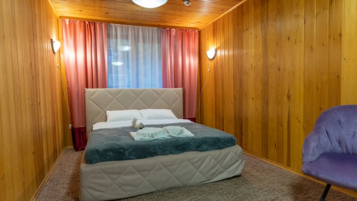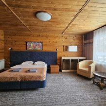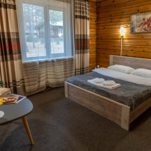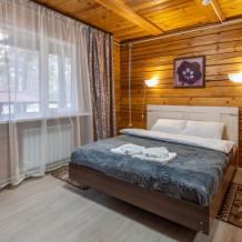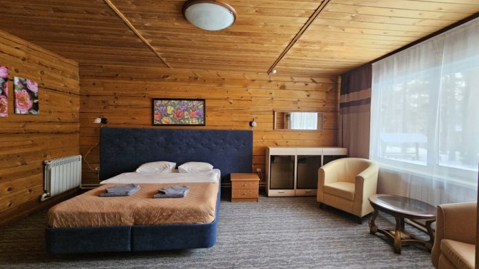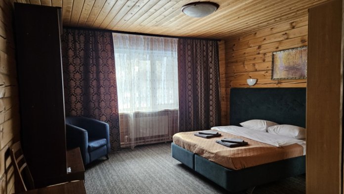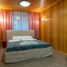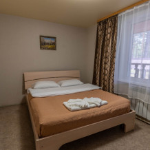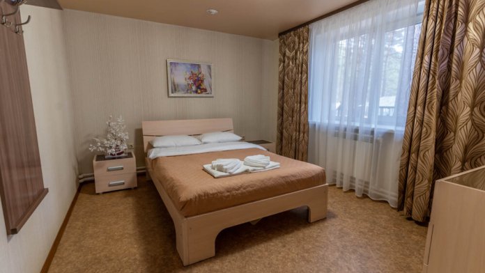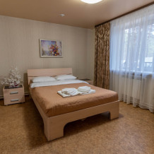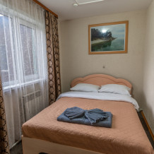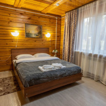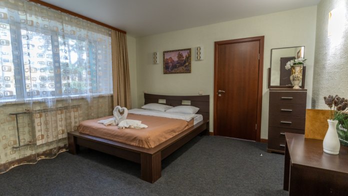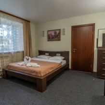 Улучшенный двухкомнатный номер, двухместного размещения. В номере: одна двуспальная кровать, прикроватная тумбочка, плательный шкаф, небольшая гостиная.