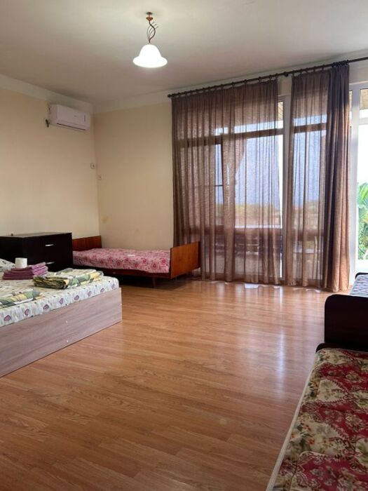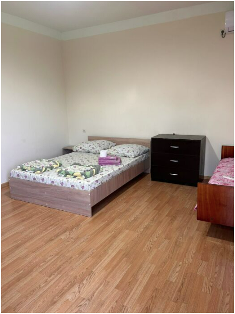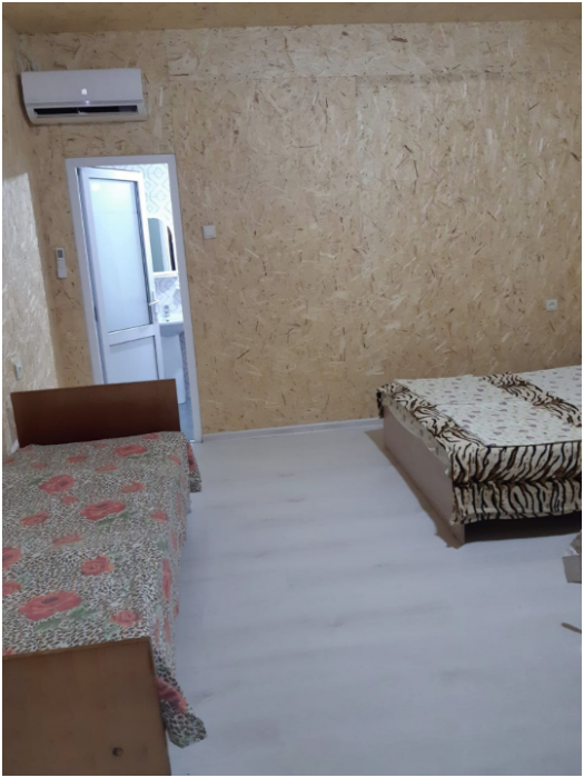Один трёхкомнатный коттедж общей вместимостью 10 человек. Можно арендовать отдельно по комнатам. Вход в каждую комнату с улицы отдельный. В каждой комнате свой санузел и кондиционер.