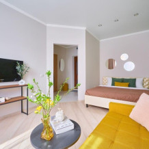 Вся необходимая техника: стиральная машина, кондиционер, микроволновая печь, фен.