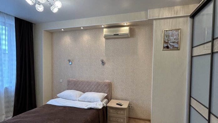 Квартира рассчитана до 4 человек, есть двухместная кровать и двухместный диван в другой комнате. В квартире есть все необходимое для комфортного проживания: мягкое постельное белье, средства гигиены, полотенца. На кухне чайник, холодильник, микроволновая печь, посуда, плита, посудомоечная машина. Горячая вода круглосуточно.