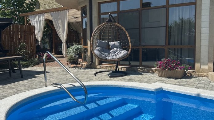 - Бассейн (8x3x1,5) с подогревом и шезлонгами;