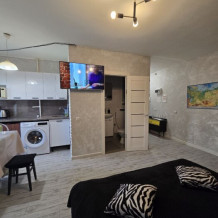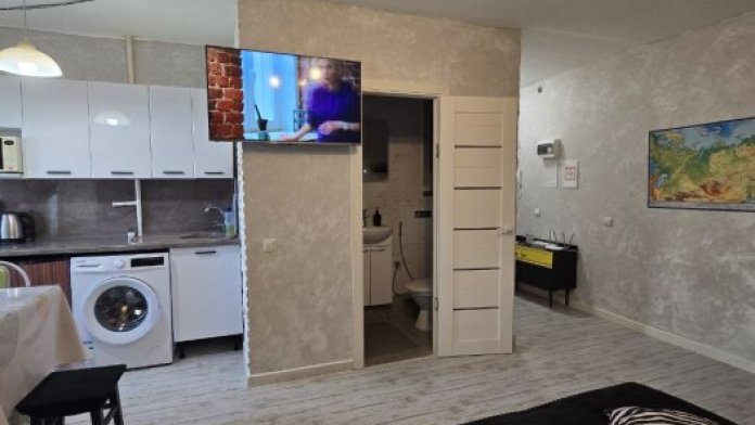 - Всю необходимую бытовую технику (ЖК-Телевизор, холодильник, микроволновку, утюг, новый фен, стиральную машину, чайник, индукционную плитку, гладильную доску и сушилку).