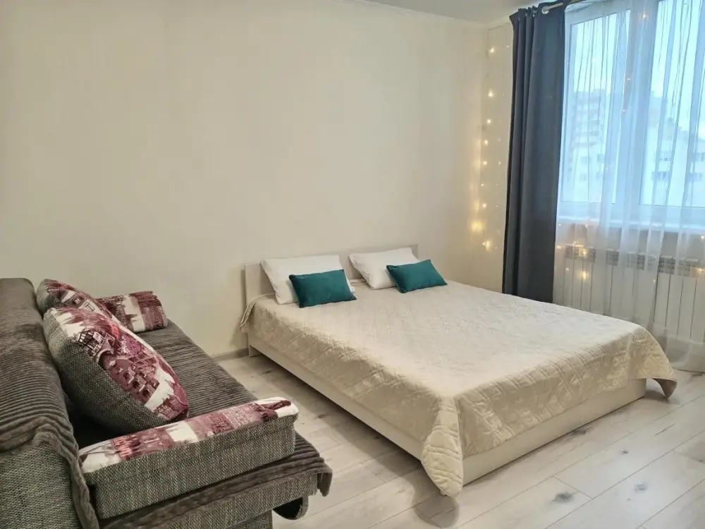 Просторная квартира с евро ремонтом, с двуспальной кроватью, с небольшим раскладным диваном, wi-fi, где прекрасно могут разместиться семья из 4-х человек, или компания из 4-х человек. В ванной комнате Вы всегда найдете свежие полотенца, фен, и необходимые предметы гигиены. В комнате есть телевизор с кабельным телевидением, чистое постельное белье. На кухне есть все для того что бы приготовить обед или ужин, чай и кофе для Вашего удовольствия и вся необходимая посуда так же в Вашем распоряжении. Окна в квартире выходят во двор, поэтому Вы не услышите гул машин по ночам. Шикарный вид с балкона 9-го этажа