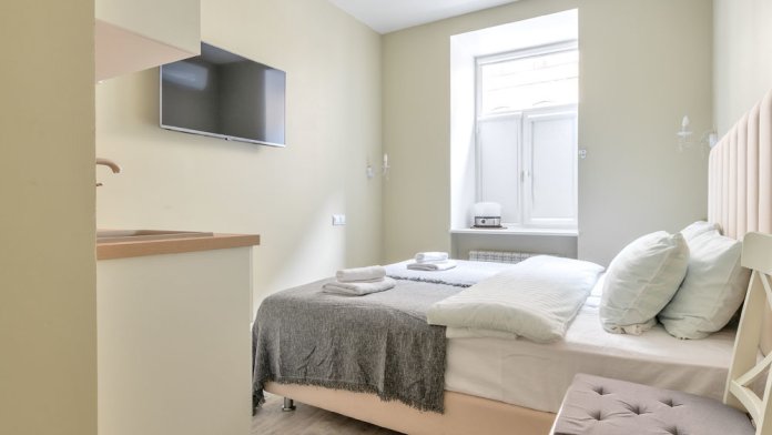 Студия на высоком первом этаже в самом центре Санкт-Петербурга. В студии сделан свежий ремонт, в ванной установлена современная сантехника.