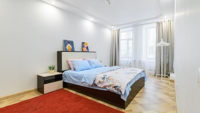 Просторная трехкомнатная квартира площадью 115 кв. м с оборудованной кухней и всем необходимым для проживания в историческом центре Санкт-Петербурга.