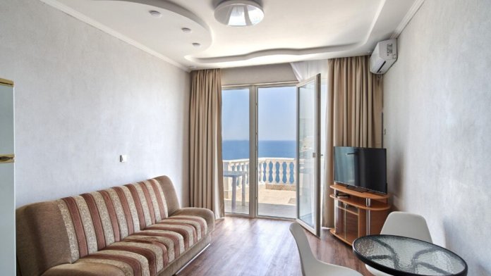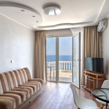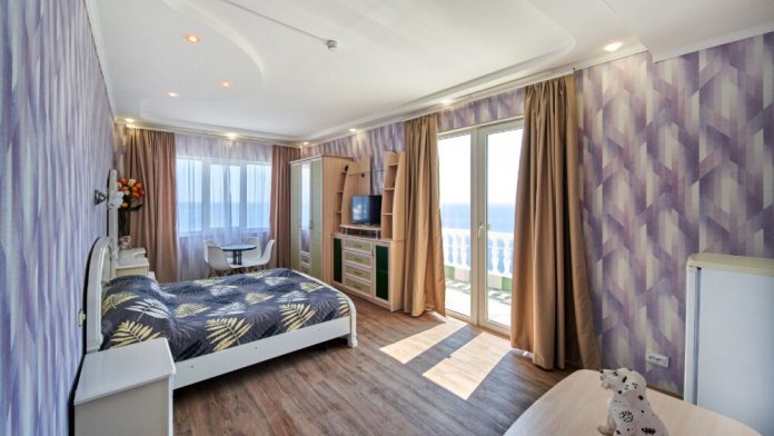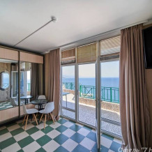 Из номера есть выход на большую общую с соседнем номером террасу с панорамным видом на море.