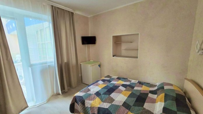Номер семейный -двухкомнатный номер,с видом на соседнее здание с одним санузлом на две комнаты. Общая площадь номера – 40 м.кв. Номер разделен на две отдельные комнаты. В каждой комнате двуспальная или две полуторные кровати ,шкаф,, трюмо, , кондиционер, телевизор, холодильник. Также в комплектацию номера входит чайник столовые приборы, чашки, тарелки и фен. *Имеется вариант размещения до 6 человек, с дополнительными полуторными кроватями, уточняйте при бронировании. Отель не гарантирует номер с балконом! Смена постельного белья через каждые пять дней, смена полотенец раз в три дня.