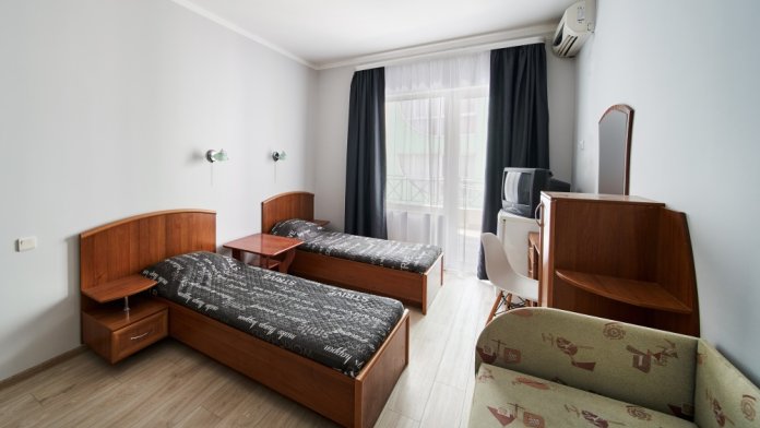 Также помимо кровати в некоторых номерах есть полуторный раскладной диван.