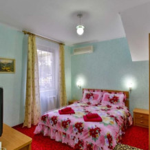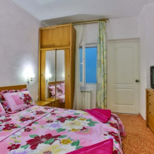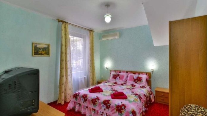 Во всех номерах санузел, телевизор , холодильник, чайник, набор посуды, кондиционер, сейф, фен, Wi-Fi, горячая и холодная вода круглосуточно, центральное отопление (на зимний период), двуспальная кровать и раскладное кресло. Уборка ежедневно.