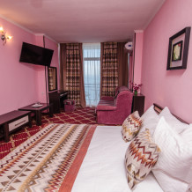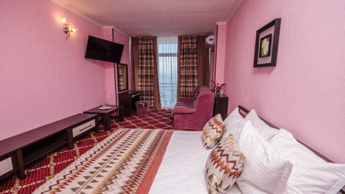 Номера выходят на северную сторону. Для комфортного отдыха вдвоем номер располагает всем необходимым. Это балкон, кондиционер для создания прохлады, полный пакет телеканалов.