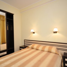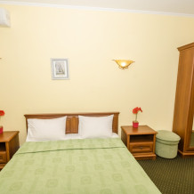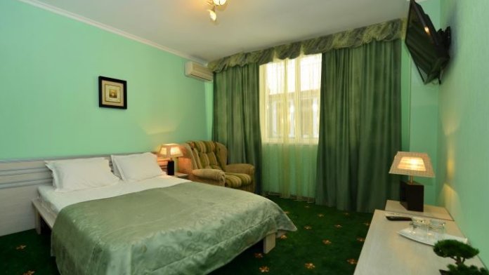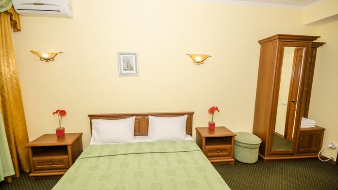 Номера выходят на северную сторону. Для комфортного отдыха вдвоем номер располагает всем необходимым. Это кондиционер для создания прохлады, полный пакет телеканалов, Wi-Fi. Номер без балкона.
