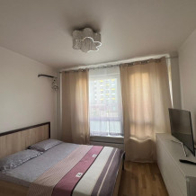 Уютная квартира, с большой кухней, оснащённой современной техникой, посудомоечной машиной, оригинальной люстрой и дорогим комфортным диваном. Спальня с двуспальной кроватью и матрасом, люстрой-вентилятором и встроенным шкафом.