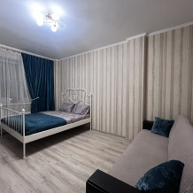 В квартире есть все необходимое: двухспальная кровать, диван, кухонный гарнитур, плита, микроволновка, чайник, стиральная машина, телевизор, шкаф, обеденная зона, гладильные принадлежности, Wi-Fi. Предоставляются туалетно-косметические принадлежности.