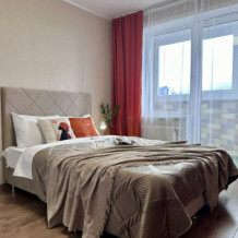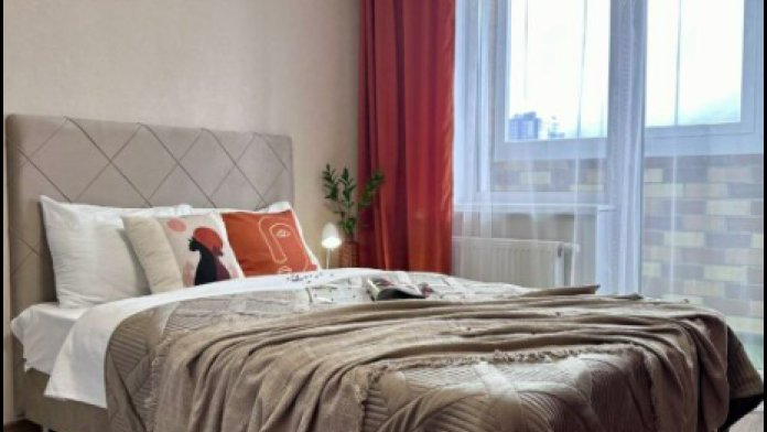 Стильная квартира в новом ЖК, стильный ремонт в доме с закрытой территорией и видеонаблюдением. В квартире могут разместиться до 2 гостей - двуспальная кровать. Для комфортного проживания наших гостей мы предоставляем: 2-спальная кровать с ортопедическим матрасом, рабочий стол, вместительный шкаф для одежды, телевидение с выходом в интернет, скоростной WI-FI,️ кухня, оснащенная посудой и техникой (холодильник, варочная поверхность, микроволновка, электрический чайник), просторная ванная комната (ванна), свежее постельное белье и полотенца️, закрытая территория, видеонаблюдение️, утюг, фен, средства гигиены, бесконтактное заселение в любое время суток. Видеонаблюдение в доме