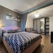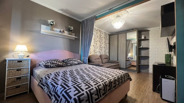 В квартире есть все необходимое: двухспальная кровать, диван, кухонный гарнитур, плита, микроволновка, чайник, стиральная машина, телевизор, шкаф, обеденная зона, гладильные принадлежности, Wi-Fi. Предоставляются туалетно-косметические принадлежности.