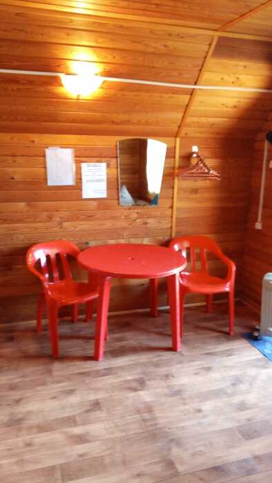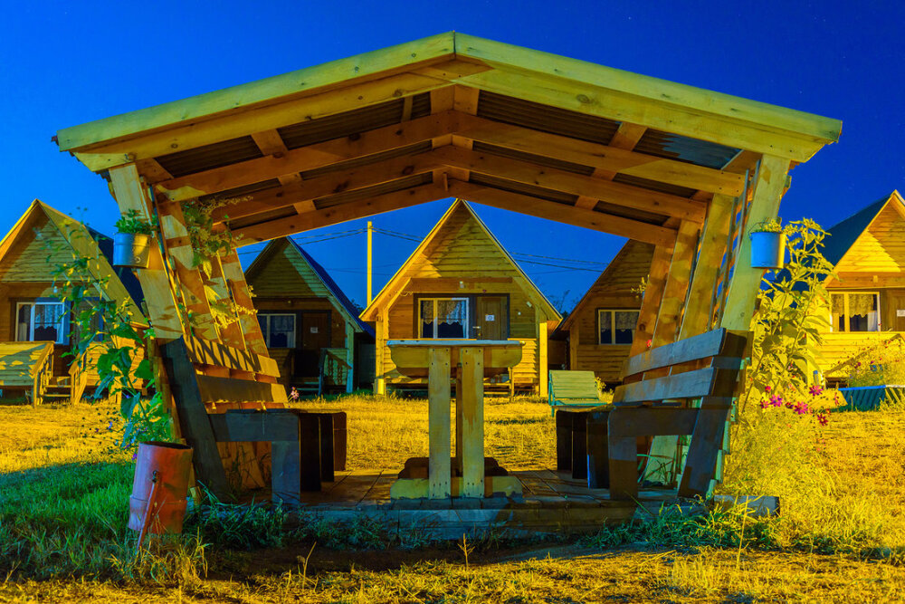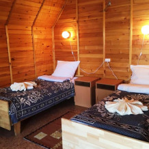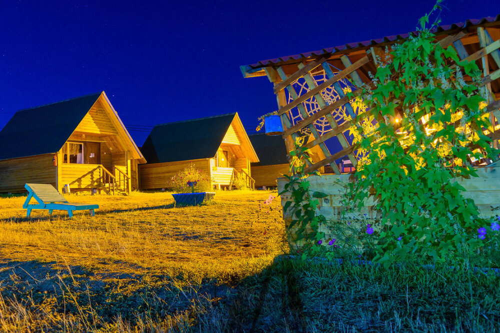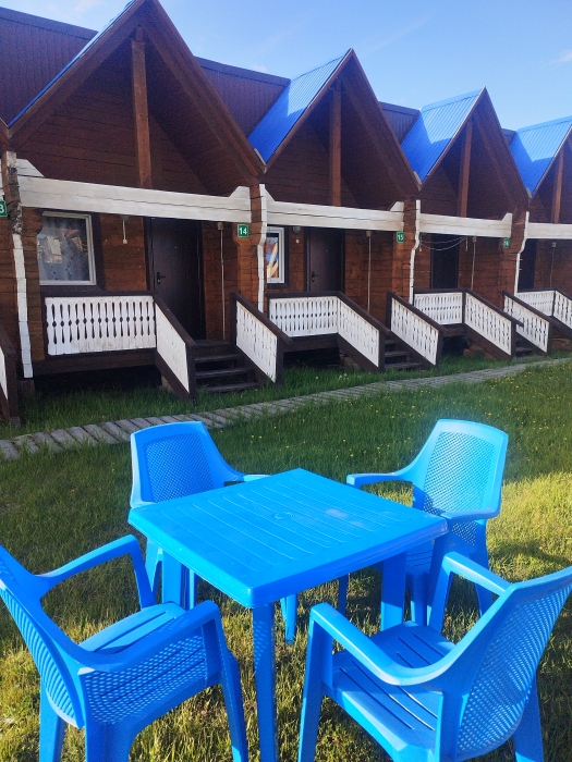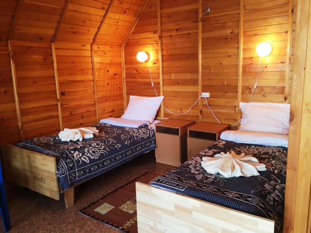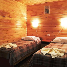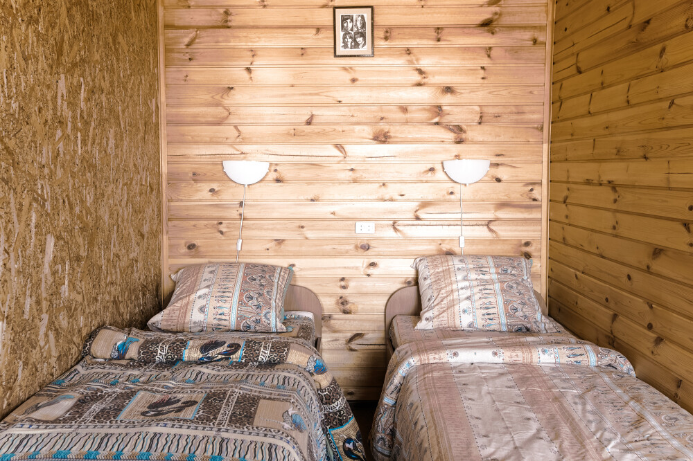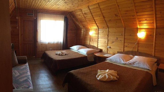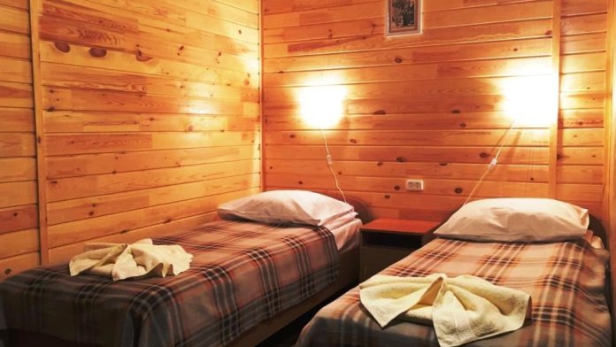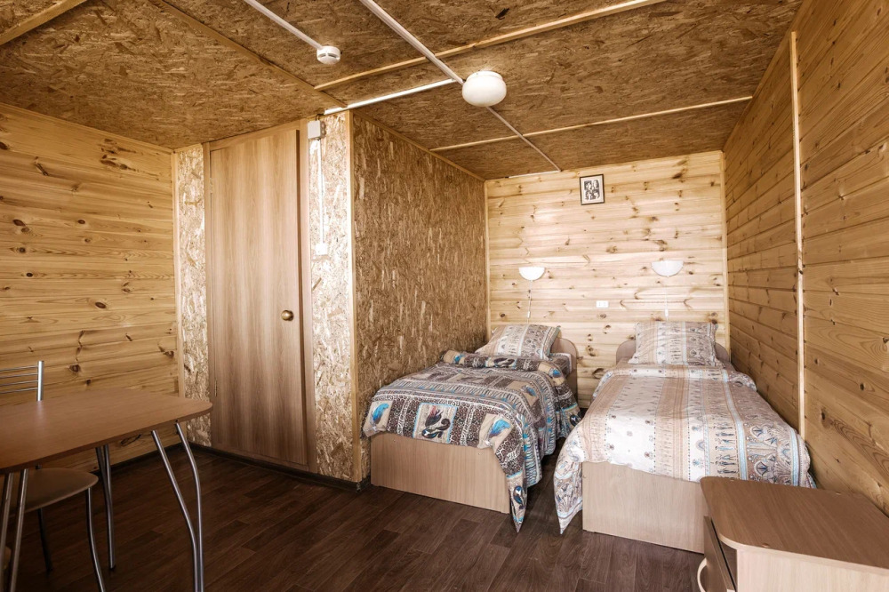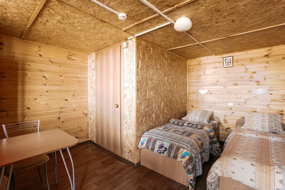 Для проживания и отдыха предоставляются уютные домики. Они оснащены всей мебелью и техникой для хорошего времяпровождения: удобные кровати, шкафы и тумбочки для хранения вещей. Собственный санузел укомплектован необходимой сантехникой и набором полотенец. Можно воспользоваться услугами прачечной.