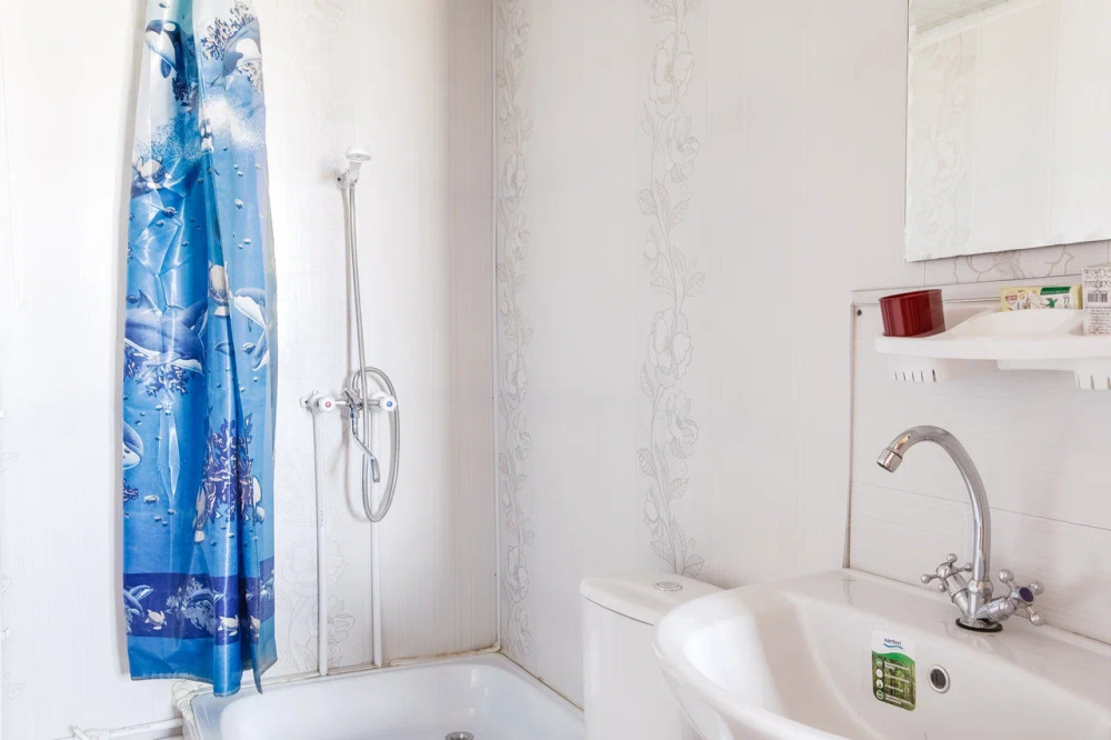 Летний домик «Улучшенный». В домике (туалет, раковина, горячая и холодная вода, душевой поддон, три односпальные кровати.
