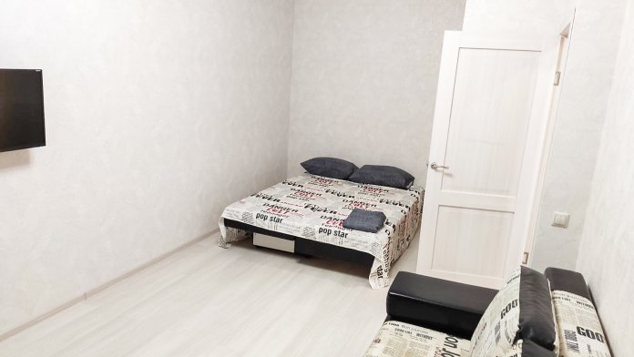 В квартире есть все необходимое: двухспальная кровать, кухонный гарнитур, плита, микроволновка, чайник, стиральная машина, телевизор, шкаф, обеденная зона, гладильные принадлежности, Wi-Fi. Предоставляются туалетно-косметические принадлежности.