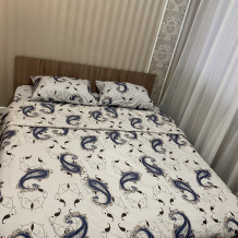 В квартире есть все необходимое: двухспальная кровать, кухонный гарнитур, плита, микроволновка, чайник, стиральная машина, телевизор, шкаф, обеденная зона, гладильные принадлежности, Wi-Fi. Предоставляются туалетно-косметические принадлежности.