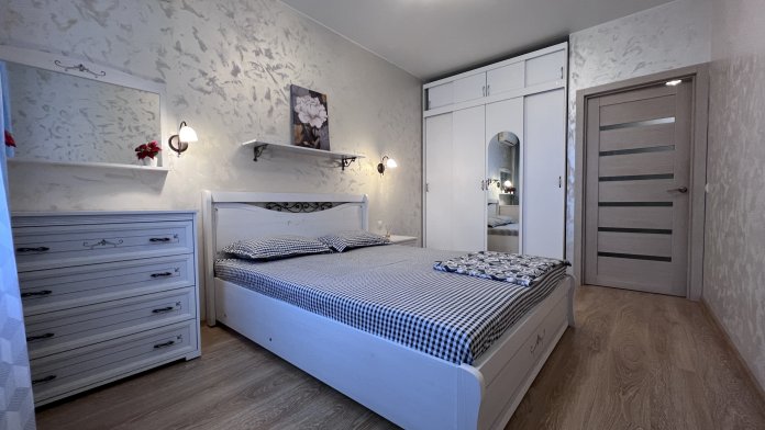 В квартире есть все необходимое: двухспальная кровать, диван, кухонный гарнитур, плита, микроволновка, чайник, стиральная машина, телевизор, шкаф, обеденная зона, гладильные принадлежности, Wi-Fi. Предоставляются туалетно-косметические принадлежности.