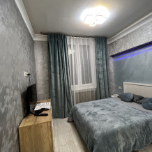 В квартире есть все необходимое: двухспальная кровать, кухонный гарнитур, плита, микроволновка, чайник, стиральная машина, телевизор, шкаф, обеденная зона, гладильные принадлежности, Wi-Fi. Предоставляются туалетно-косметические принадлежности.