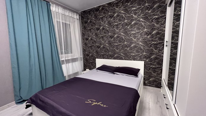В квартире есть все необходимое: двухспальная кровать, диван, кухонный гарнитур, плита, микроволновка, чайник, стиральная машина, телевизор, шкаф, обеденная зона, гладильные принадлежности, Wi-Fi. Предоставляются туалетно-косметические принадлежности.