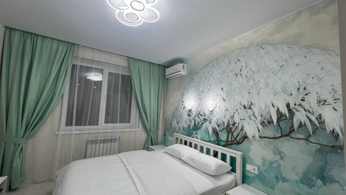 В квартире есть все необходимое: двухспальная кровать, диван, кухонный гарнитур, плита, микроволновка, чайник, стиральная машина, телевизор, шкаф, обеденная зона, гладильные принадлежности, Wi-Fi. Предоставляются туалетно-косметические принадлежности.