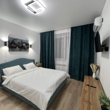 В квартире есть все необходимое: двухспальная кровать, диван, кухонный гарнитур, плита, микроволновка, чайник, стиральная машина, телевизор, шкаф, обеденная зона, гладильные принадлежности, Wi-Fi. Предоставляются туалетно-косметические принадлежности.