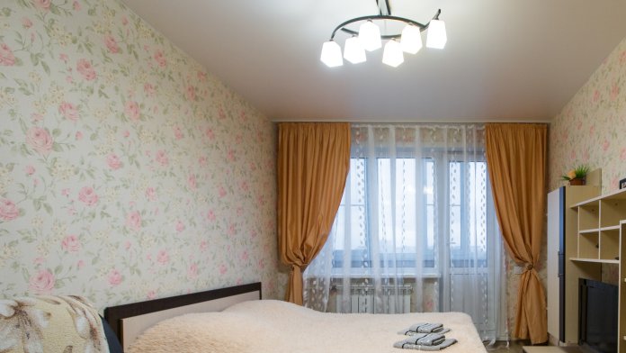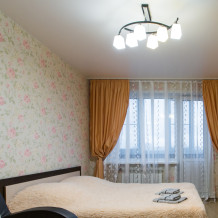 Квартира однокомнатная с отдельной кухней, балконом и раздельным санузлом. В спальне двуспальные кровать и диван. Ванная комната укомплектована принадлежностями для душа, полотенцами, тапочками и феном. В квартире есть стиральная машинка, сушилка, гладильная доска и утюг. Кухня оснащена всем необходимым для приготовления пищи. К услугам гостей бесплатный Wi-Fi и TV.