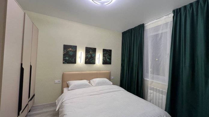 В квартире есть все необходимое: двухспальная кровать, диван, кухонный гарнитур, плита, микроволновка, чайник, стиральная машина, телевизор, шкаф, обеденная зона, гладильные принадлежности, Wi-Fi. Предоставляются туалетно-косметические принадлежности.