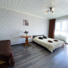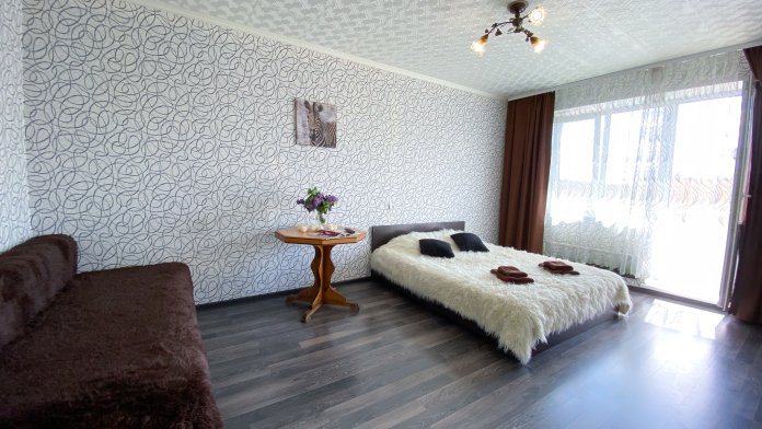 Квартира рассчитана на проживание 5 человек. В спальне двуспальные кровать и диван, на кухне отдельный диванчик. Совмещенный санузел укомплектован принадлежностями для душа, полотенцами, тапочками и феном. В квартире есть стиральная машинка, сушилка, гладильная доска и утюг. Кухня оснащена всем необходимым для приготовления пищи. К услугам гостей бесплатный Wi-Fi и TV. В квартире есть балкон.