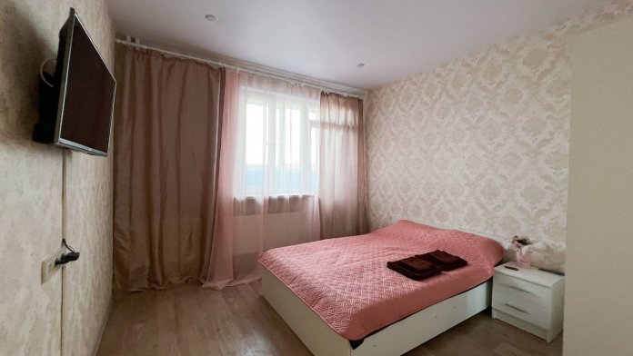 В распоряжении гостей одна спальня с двуспальной кроватью и=раскладным диваном. Отличный вариант для комфортного размещения 4х человек. Кухня полностью укомплектована для приготовления и приема пищи (плита, духовой шкаф, микроволновая печь, электрочайник, холодильник, полный комплект посуды). Совмещенный санузел. К услугам гостей стиральная машинка, сушилка, утюг и фен. В квартире работает Wi-Fi, имеется телевизор с плоским экраном.