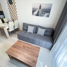 Квартира полностью укомплектована для проживания 4 человек. Современный новый ремонт в стиле лофт. В квартире имеется двуспальный диван и двуспальная кровать. Кухонная зона оборудована холодильником, TV, СВЧ. Приятным бонусом для гостей будет наличие кондиционера и посудомоечной машины. Ванная комната с душевой кабиной укомплектована стиральной машинкой, утюгом, феном. Есть WI-FI. В доме работает лифт. На балконе оборудована зона отдыха с прекрасным видом на город. Каждому клиенту предоставляется комплект постельного белья, полотенца, одноразовые тапочки, коврик в ванную.