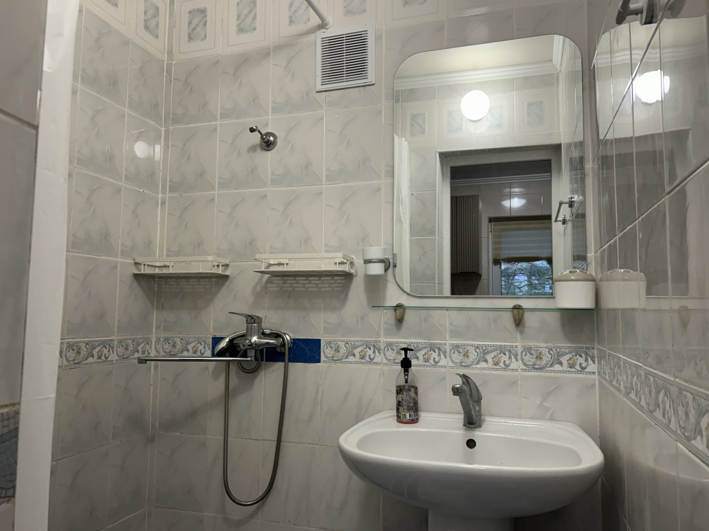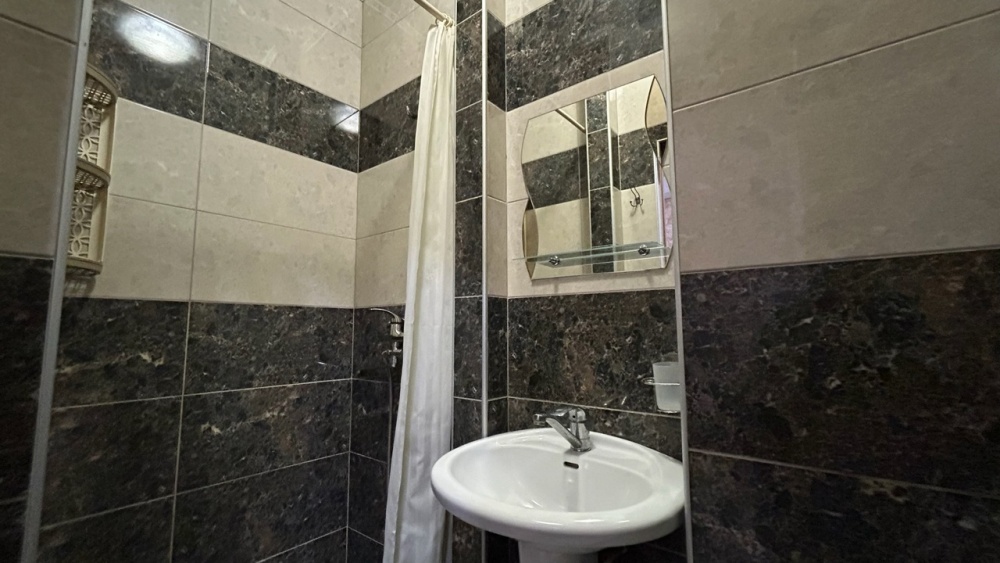 Расположен на прохладной теневой стороне дома. Полностью оборудован для проживания, с собственной отдельной кухней на балконе (холодильник, плита, эл. чайник, раковина, посуда, приборы). При заселении предоставляется посуда, постельное бельё, полотенца, средства гигиены.