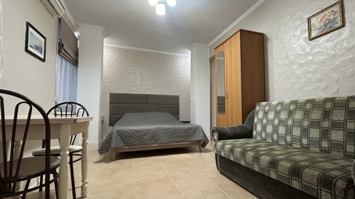 Солнечная сторона, собственный балкон со столиком и стульями, всегда есть возможность посидеть на солнце, спрятаться в тени виноградной лозы . Полностью оборудована для проживания, с собственной кухней (холодильник, плита, чайник, раковина, приборы, посуда). При заселении предоставляется посуда, постельное бельё, полотенца, средства гигиены.